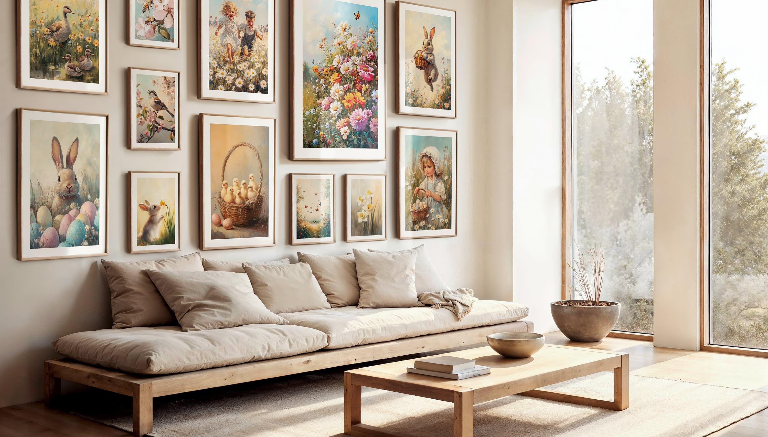 Create a warm and playful atmosphere that embraces the colors and light of Easter. Our motifs capture the joy and colorful expressions of Easter – from charming Easter bunnies and decorated eggs to blooming spring landscapes and bright pastel tones.