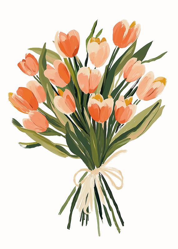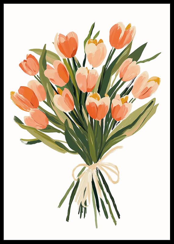 With vibrant colors and elegant design, this poster captures the beauty of a tulip bouquet. The soft yet intense shades of pink and green exude a sense of spring and new beginnings. Each flower seems to dance in harmony, and the overall effect gives the room a refreshing and calming atmosphere.