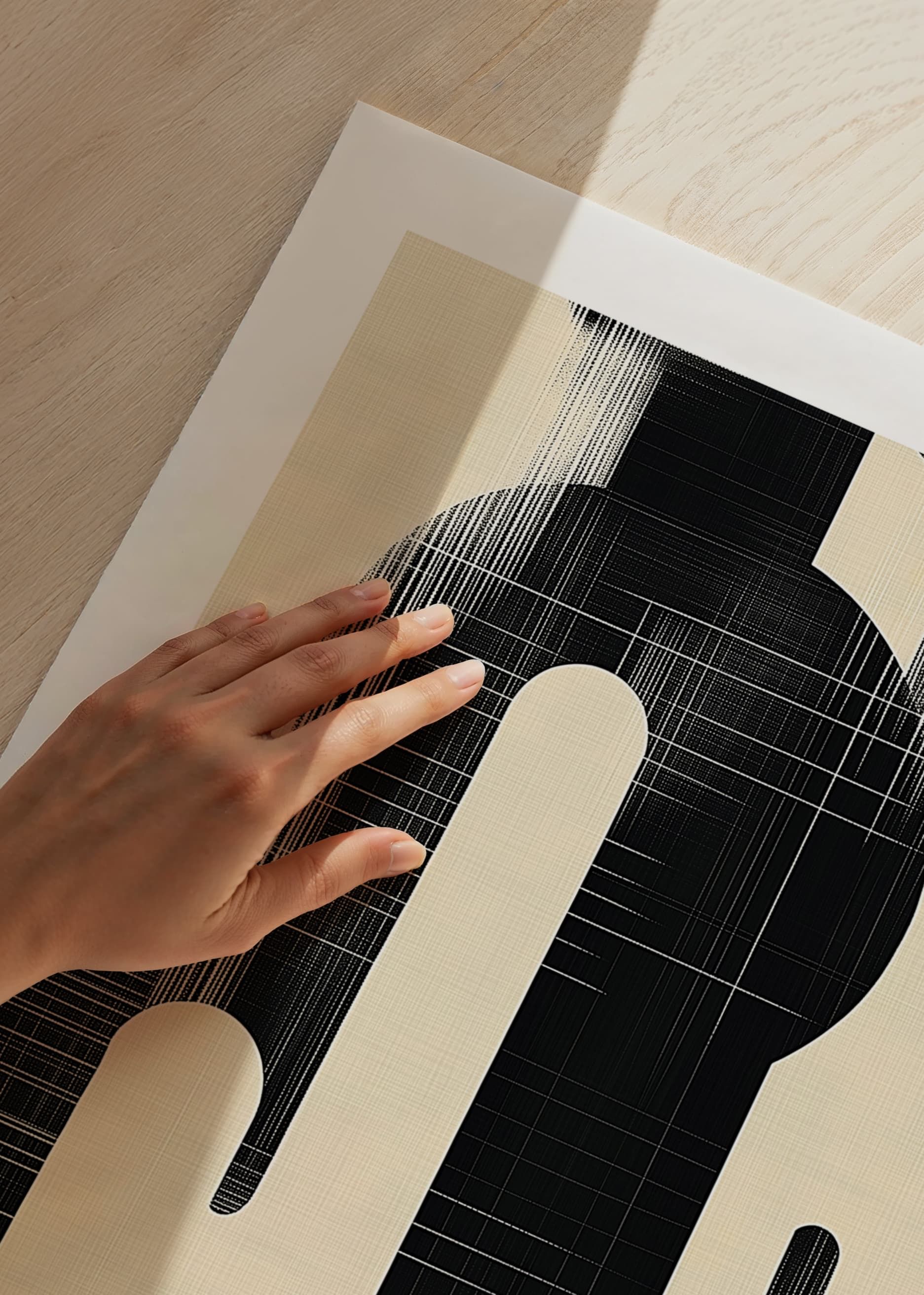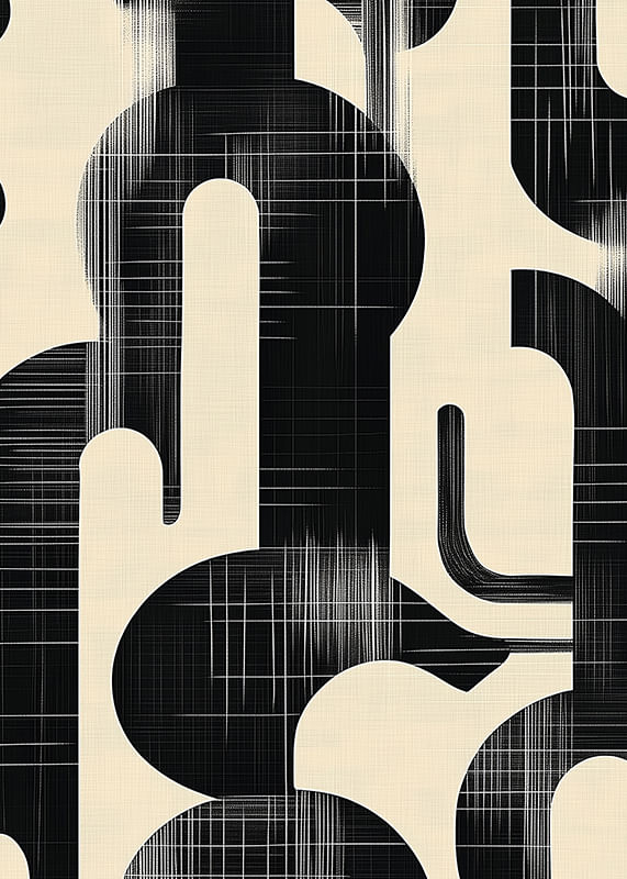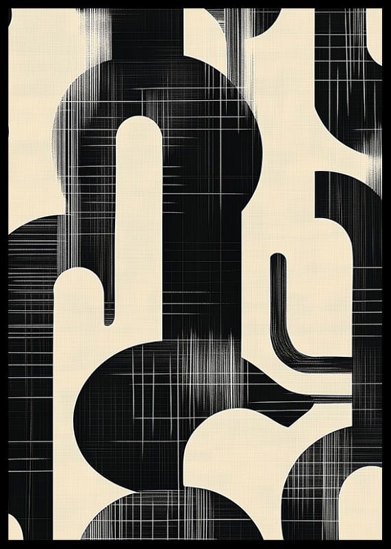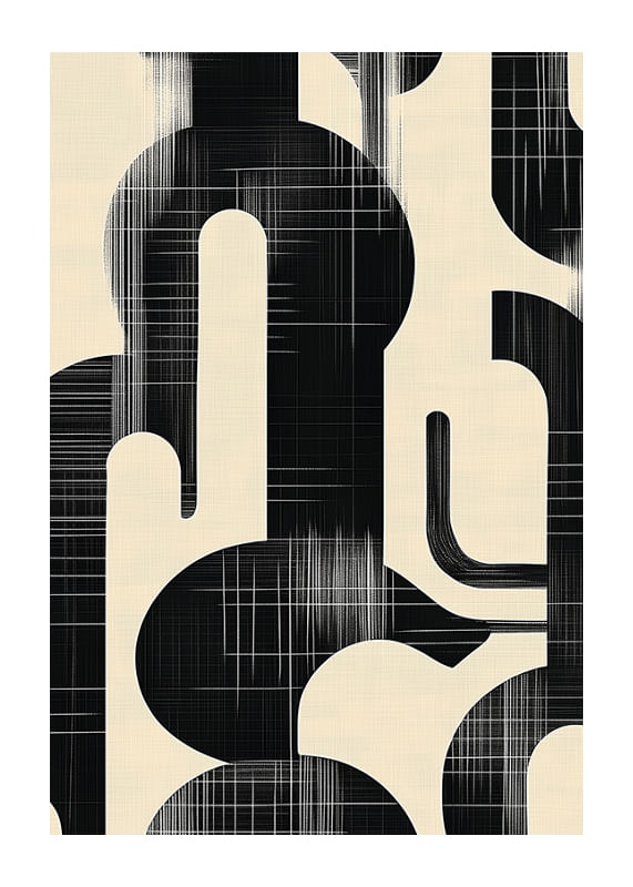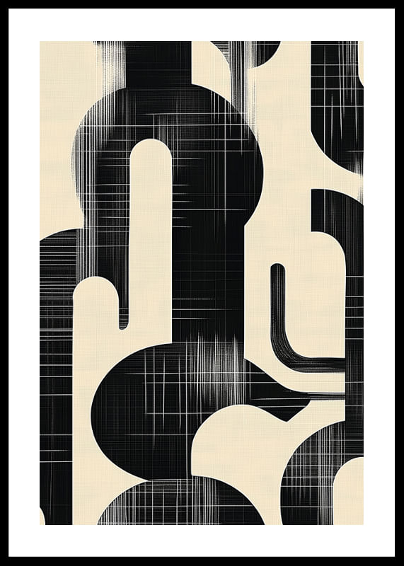 This poster catches the eye with its clean, organic shapes and a powerful contrast between black and white. The flowing lines of the pattern create a visual harmony that draws the viewer into a world of modern elegance.