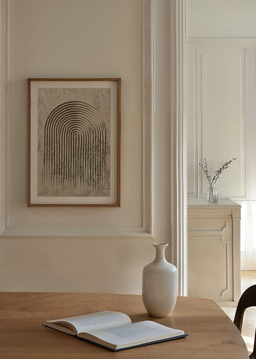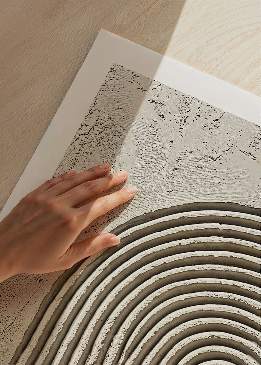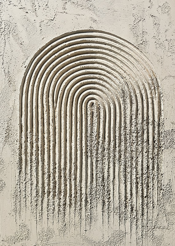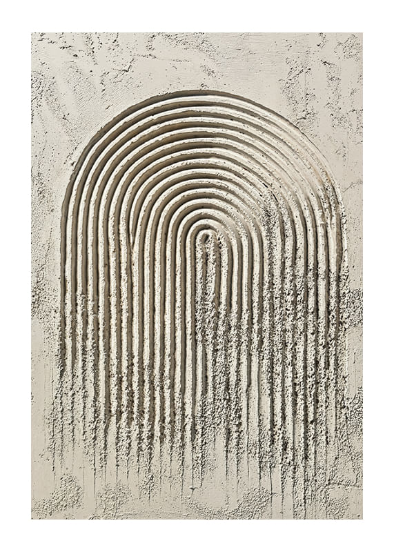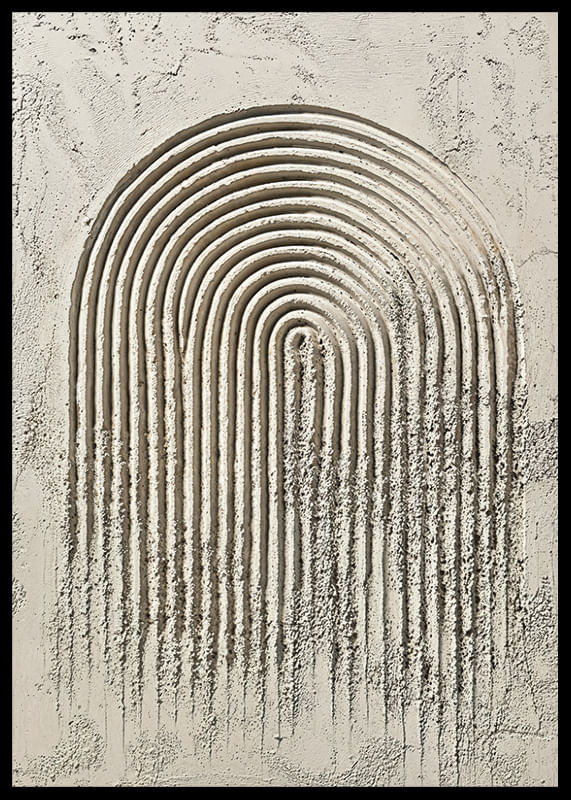This poster is a fascinating study in texture and form, where undulating lines meet a raw surface structure. This visual composition evokes a sense of dynamism and elegance, something that captivates the eye and invites reflection.
