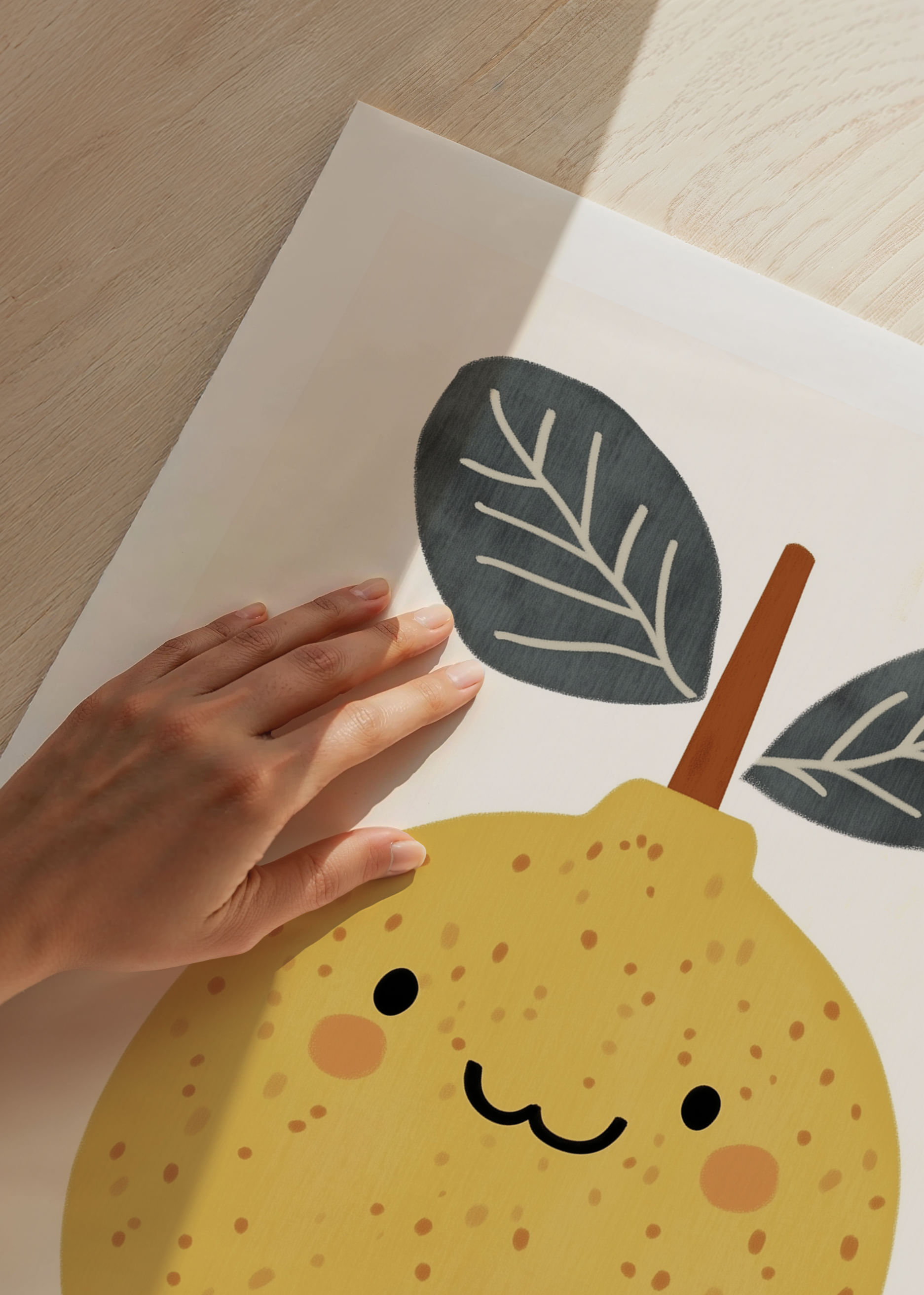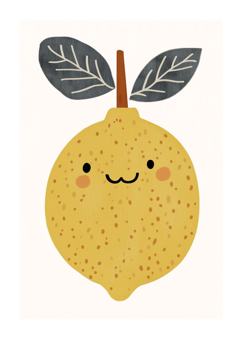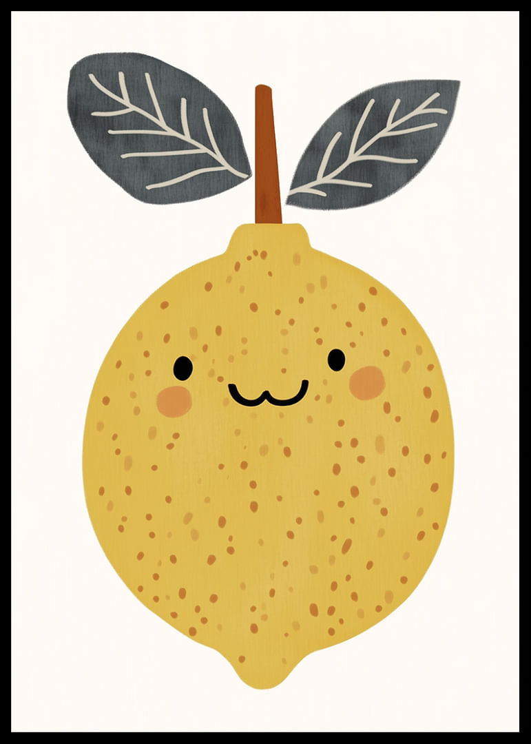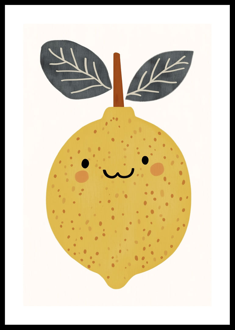 Discover the joy in this poster where a smiling lemon radiates towards the viewer. The soft, warm yellow tones and the cheerful look create a feeling of spring and freshness. The playful design gives the room a lively energy and a touch of humor. By bringing this poster into your home, you not only add color and joy, but also a daily reminder to enjoy life's little moments.