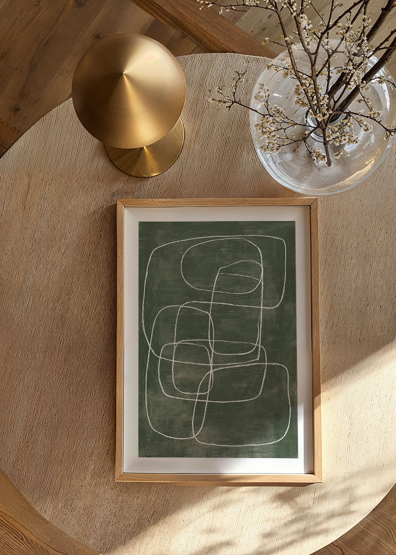 This poster catches the eye with its elegant, sinuous lines that create a subtle sense of calm and balance. With its softly sweeping shapes against a muted background, this artwork becomes a meditative focal point in the room. The subtle geometry of the poster gives the interior a touch of modern minimalism and creates a calming atmosphere where it highlights the free flow of thought.