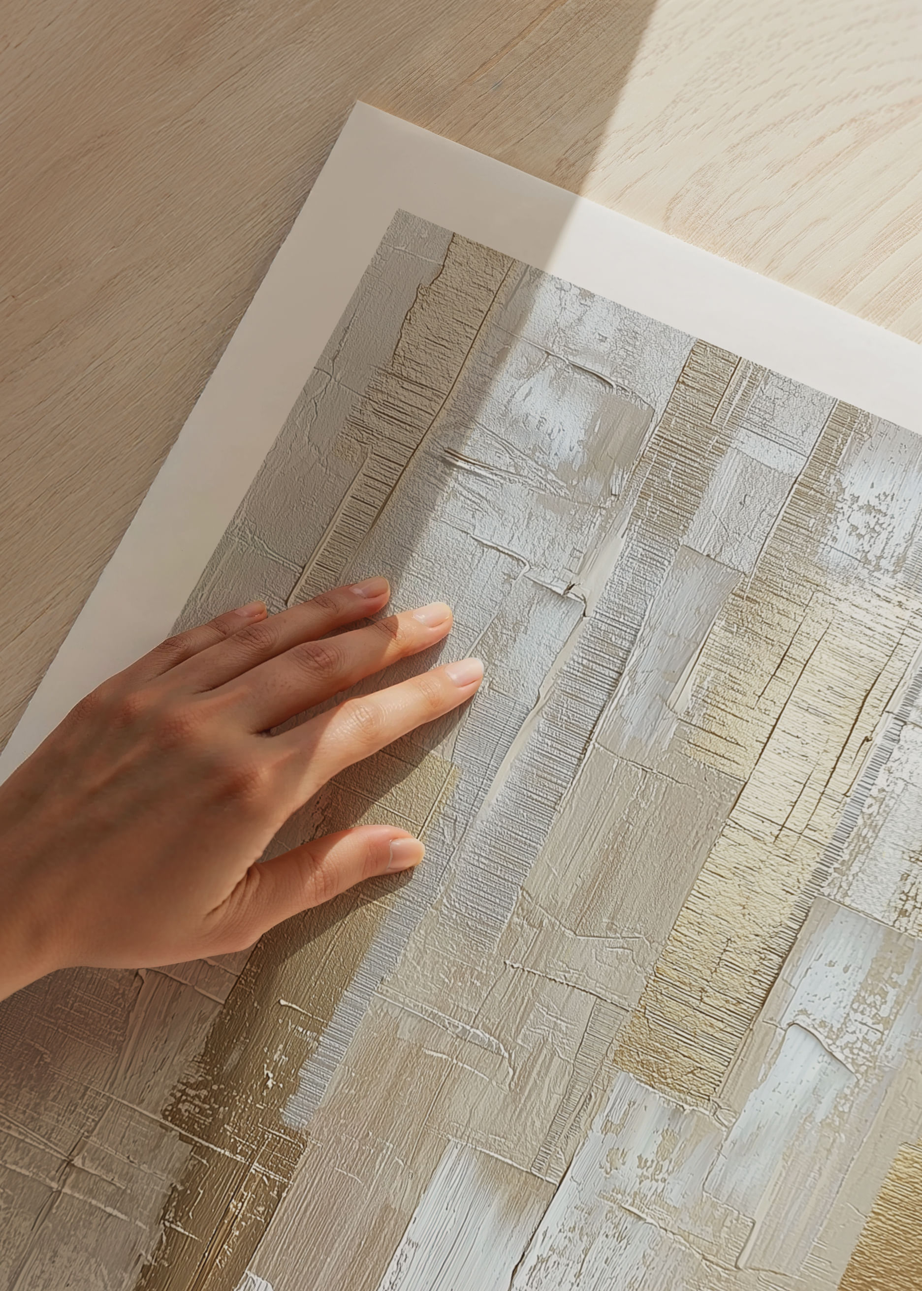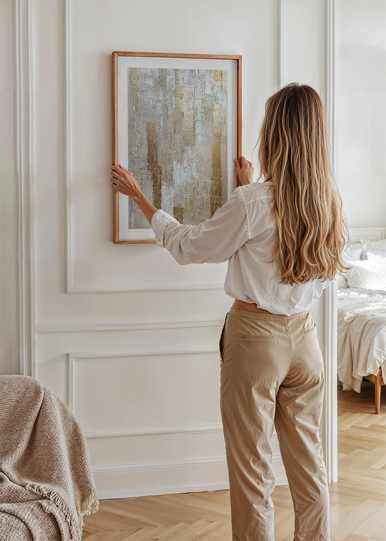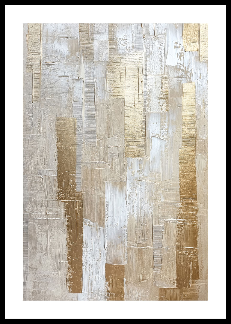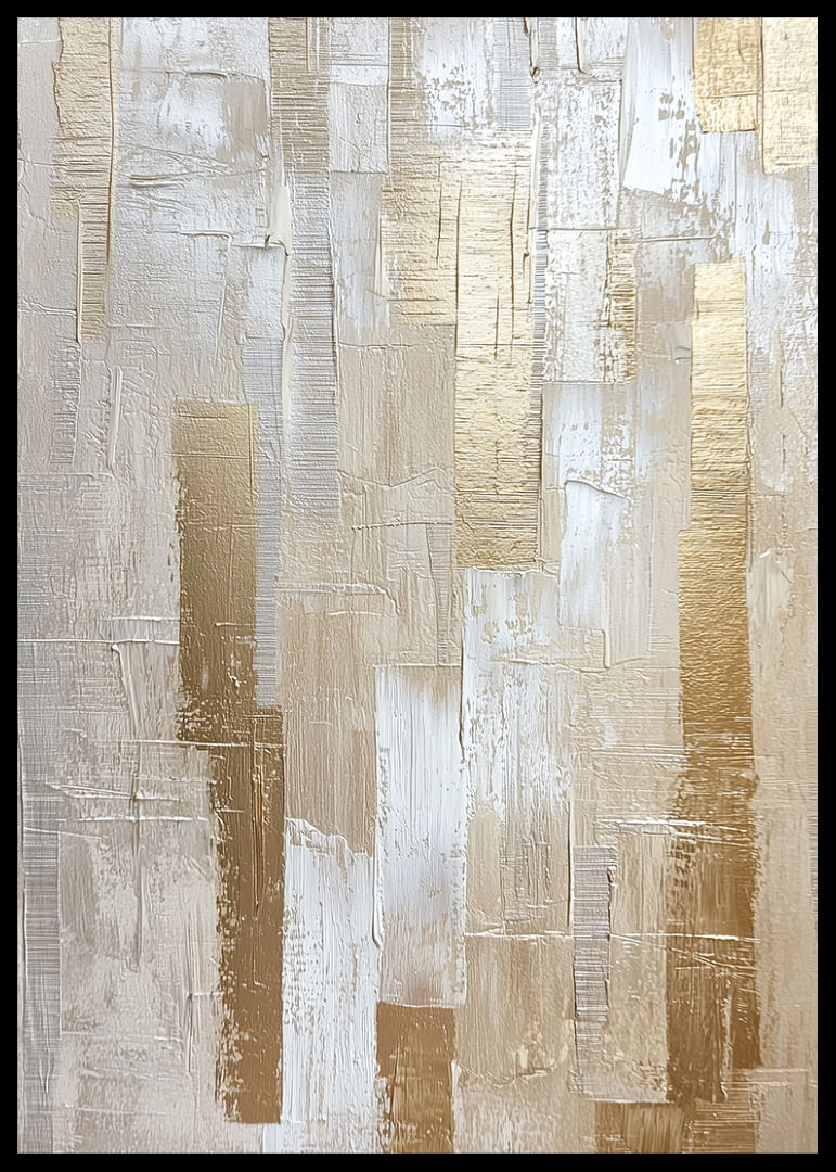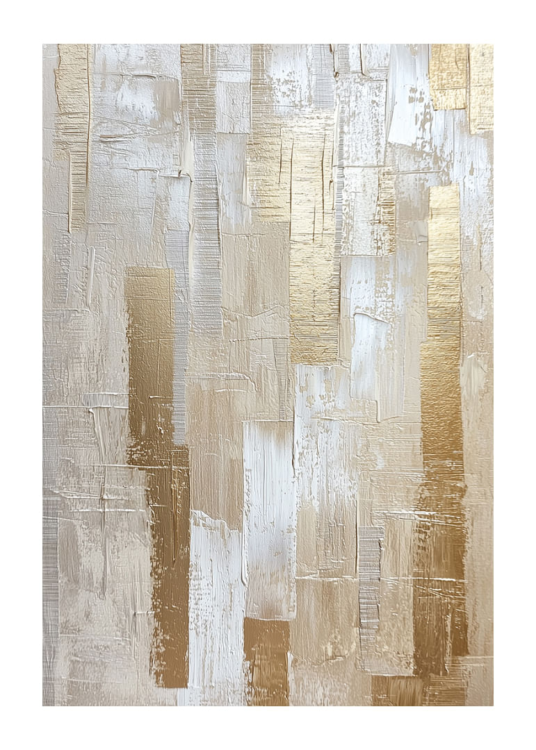 This poster catches the eye with its subtle interplay of golden and white tones, creating an elegant and sophisticated atmosphere. The different textures and shades add a sense of depth and movement, making it a captivating focal point in any room. With its luxurious feel, this poster will elevate your decor and add a touch of modern elegance to your home.