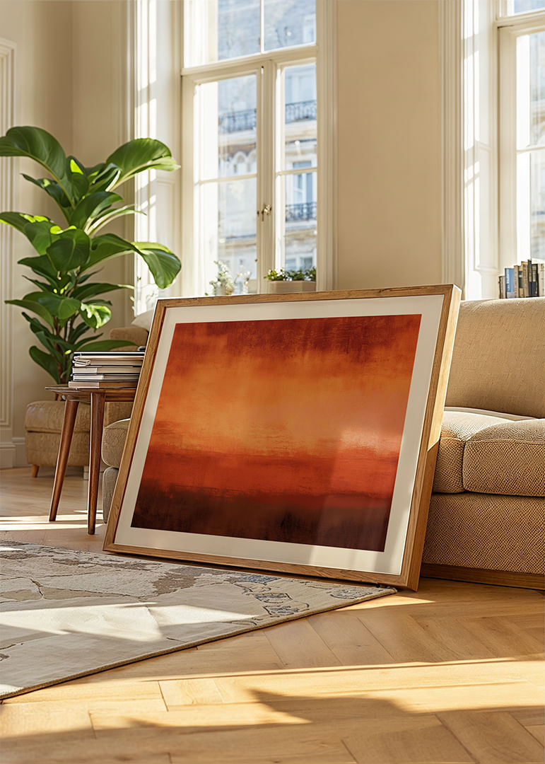 This impressive poster captures a blazing red horizon stretching across the canvas, creating a sense of warmth and tranquility. With shades of deep orange and soft red tones, it vibrates with life and intensity. The poster creates a perfect balance between drama and harmony, making it an enchanting detail that will lift the mood in any room with its radiant presence.