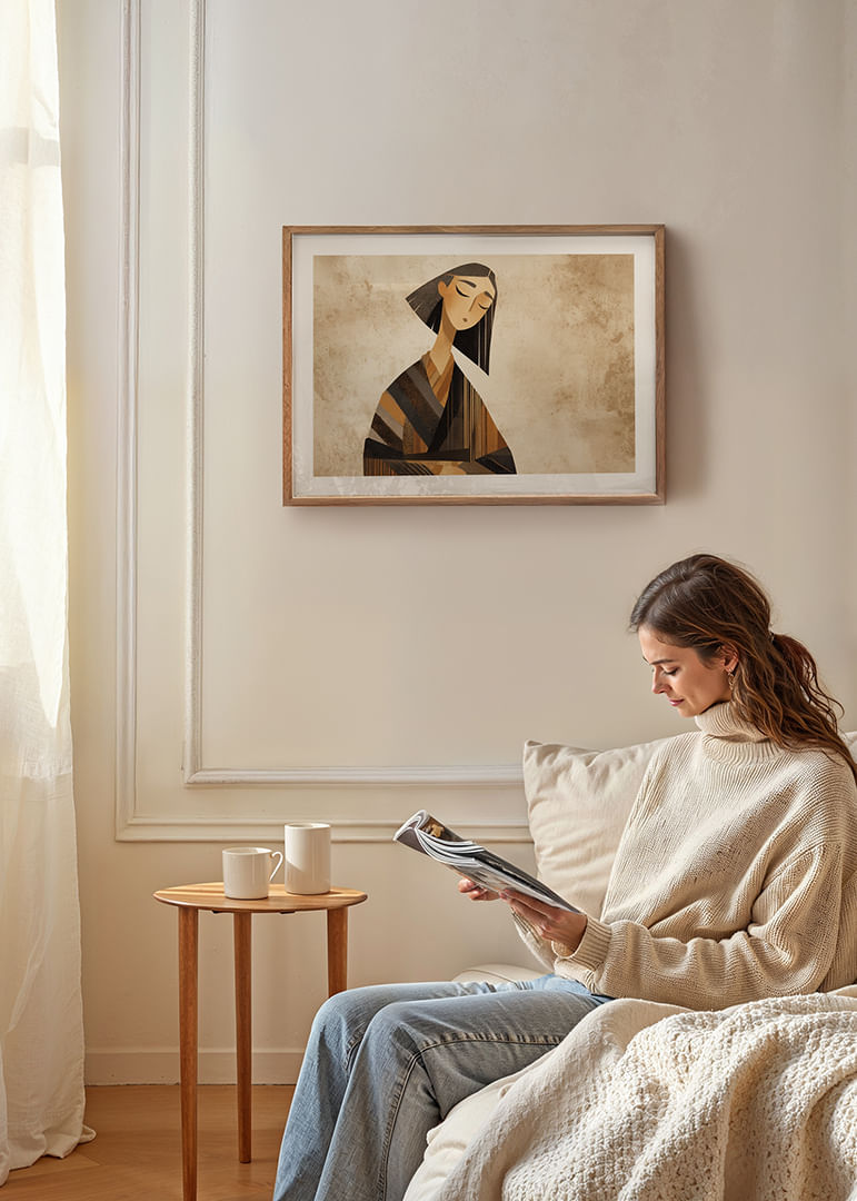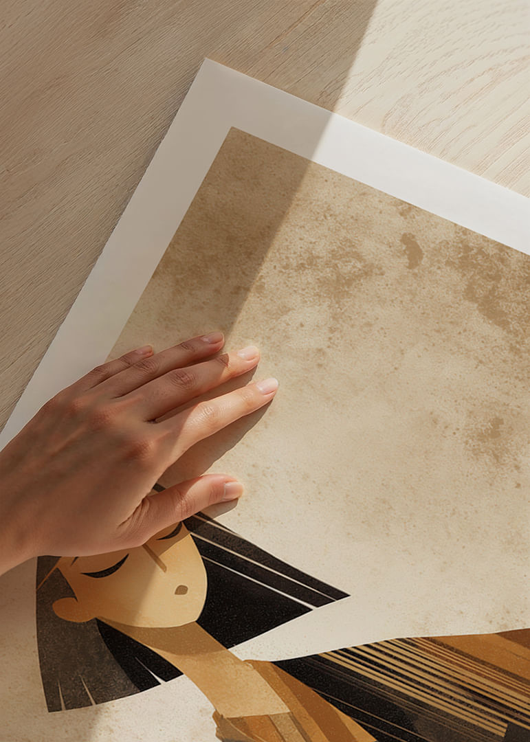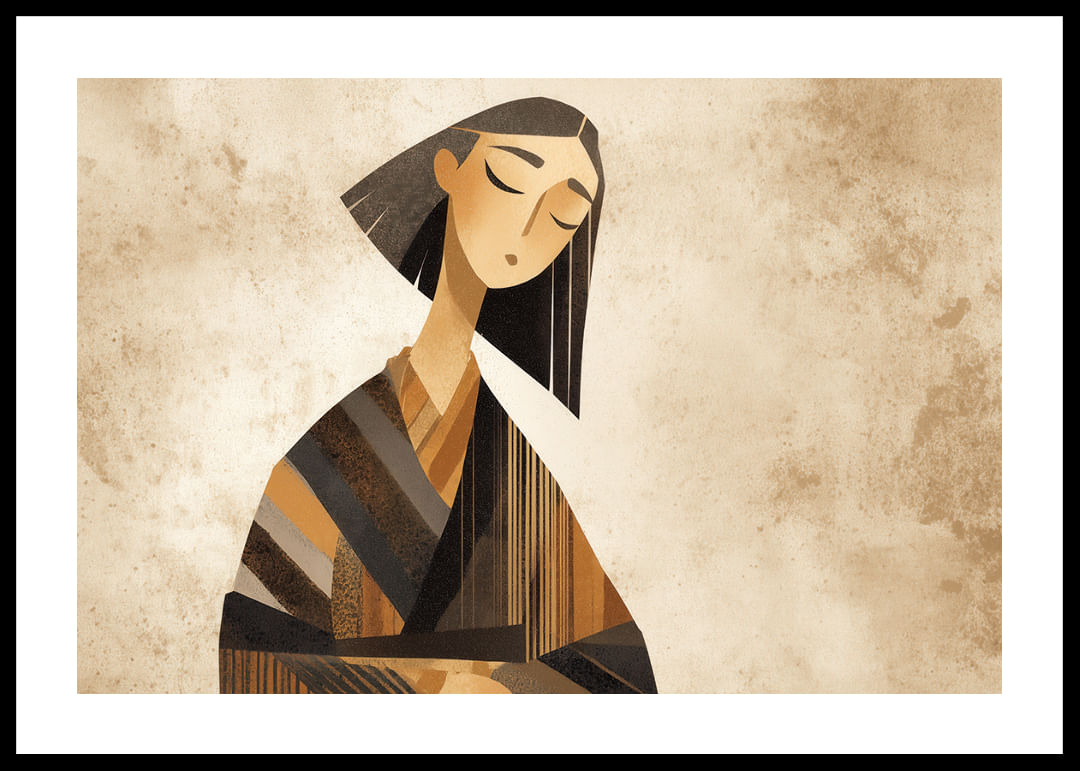 This poster creates an immediate sense of calm and balance with its elegant depiction. The earthy tones and soft lighting highlight the inner peace of the subject. With subtle details, the poster creates a timeless atmosphere that harmonizes with any interior. Perfect for transforming a room into a place of reflection and tranquility, where every glance inspires meditation and peace.