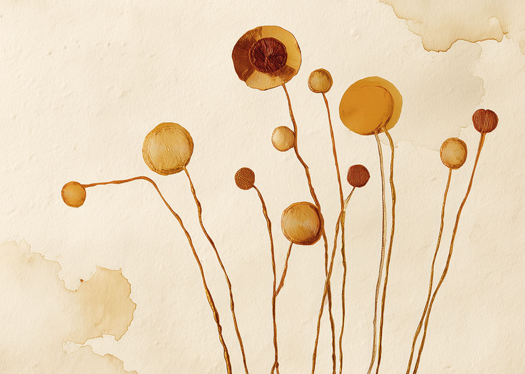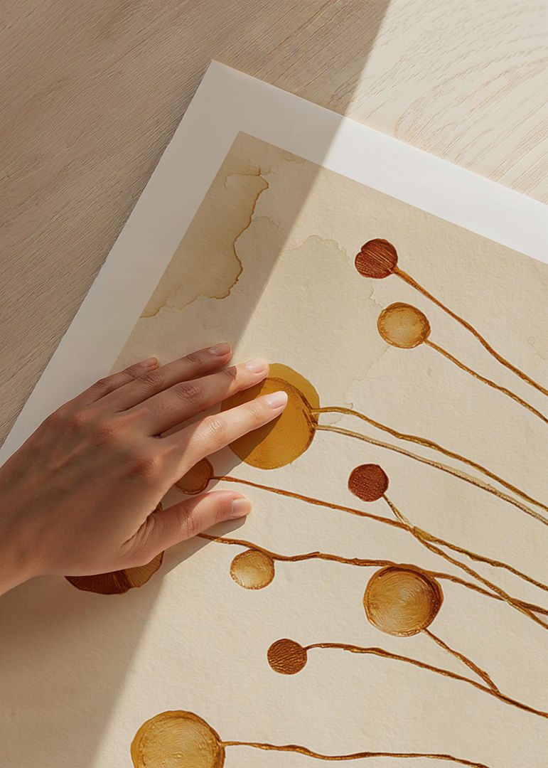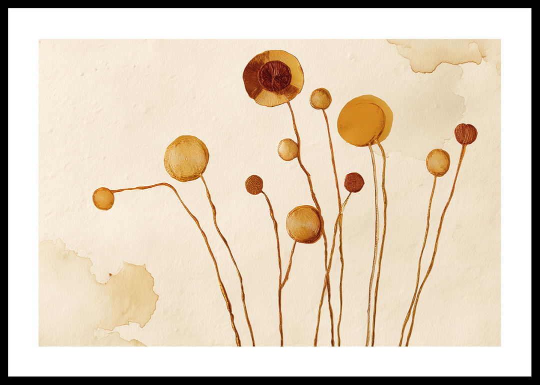 This poster catches the eye with its elegant brown flowers dancing against a warm, earthy background. The thin, curved stems create a sense of movement and poetry, where nature meets art in a harmonious way. The subtle color palette adds a calming simplicity, making this poster a perfect addition to create a warm and inviting atmosphere in the quietest corners of your home.