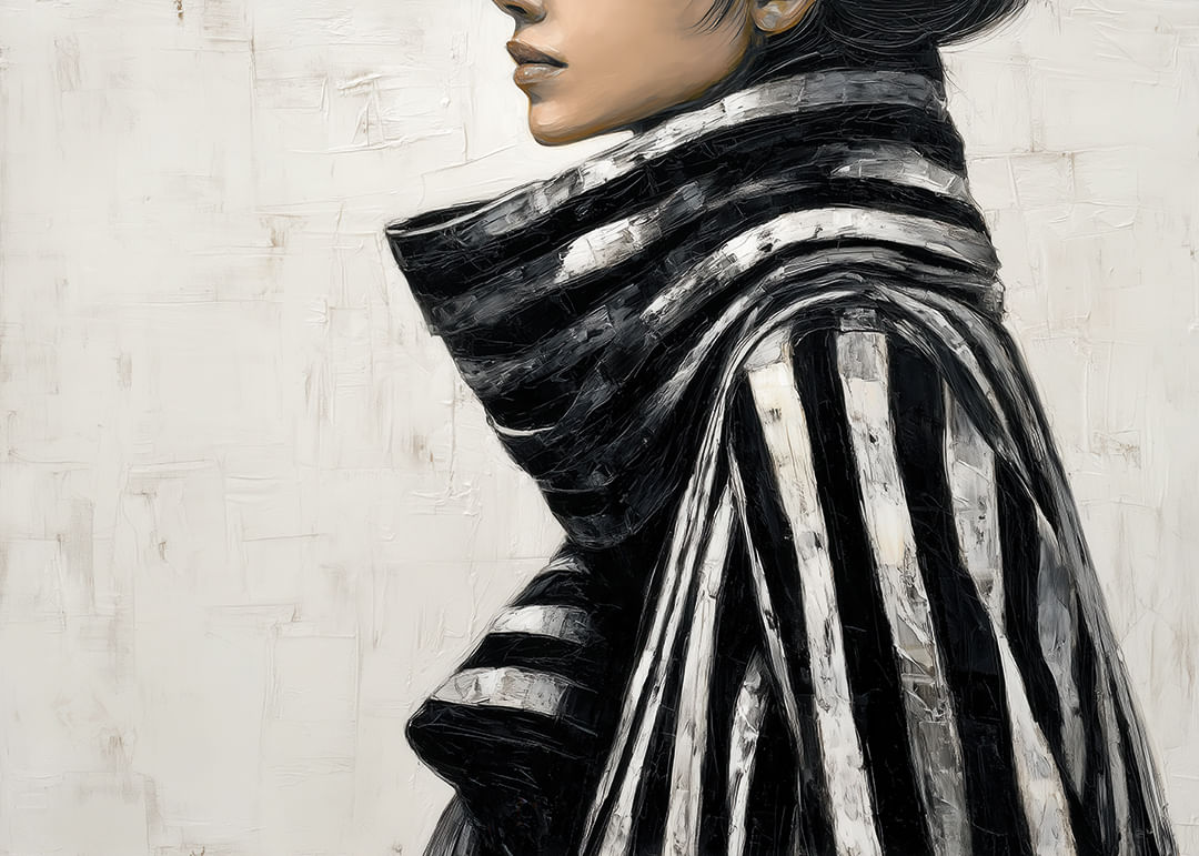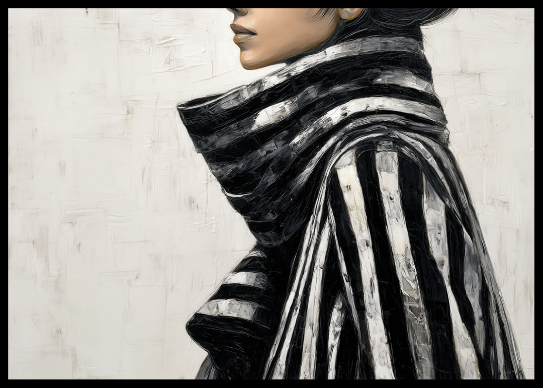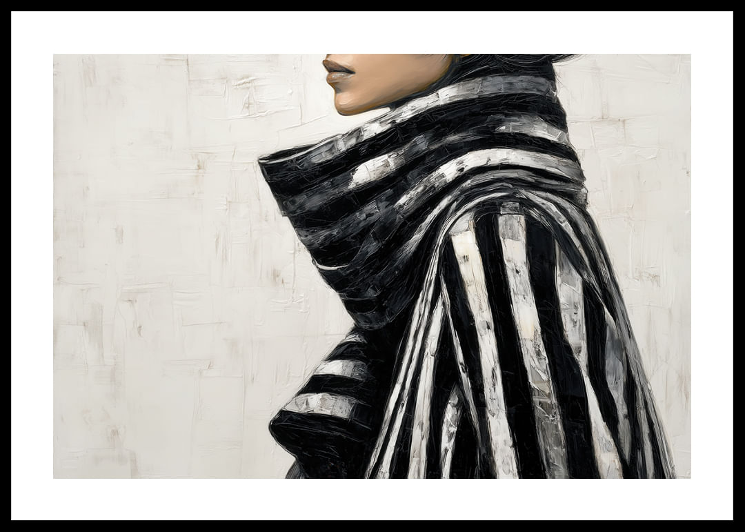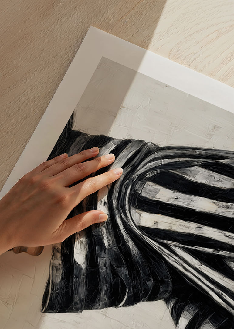 This poster immediately catches the eye with its bold, black and white stripes and gives a sense of sophisticated modernity. The pattern of lines creates an elegant harmonious movement, while the minimalist color palette accentuates a timeless style. The poster exudes a chic and stylish energy that will transform any room into a center of modern artistic taste.