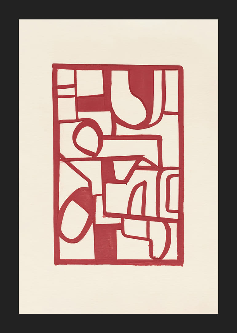 This poster immediately catches the eye with its bold red lines that create a captivating abstract pattern. The simple yet powerful shapes dance across the light background, evoking a sense of rhythm and movement. Exuding a modern elegance, the poster can transform any room into an artistic space, where it becomes a natural focal point for aesthetic admiration