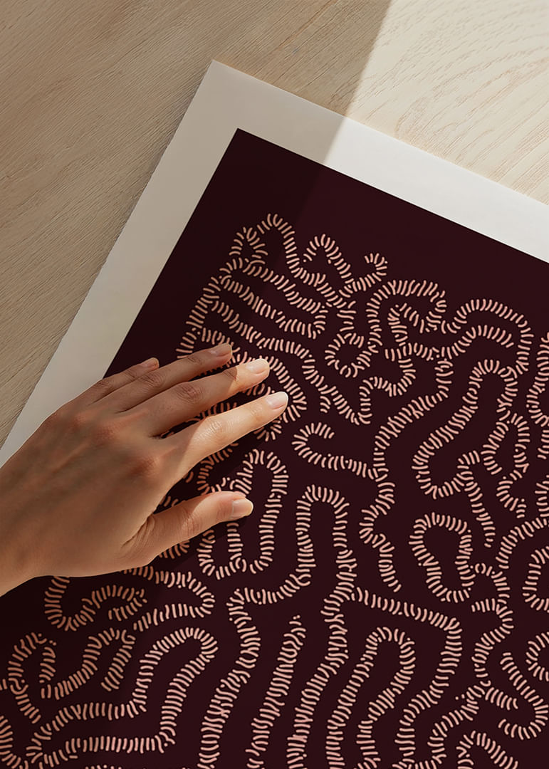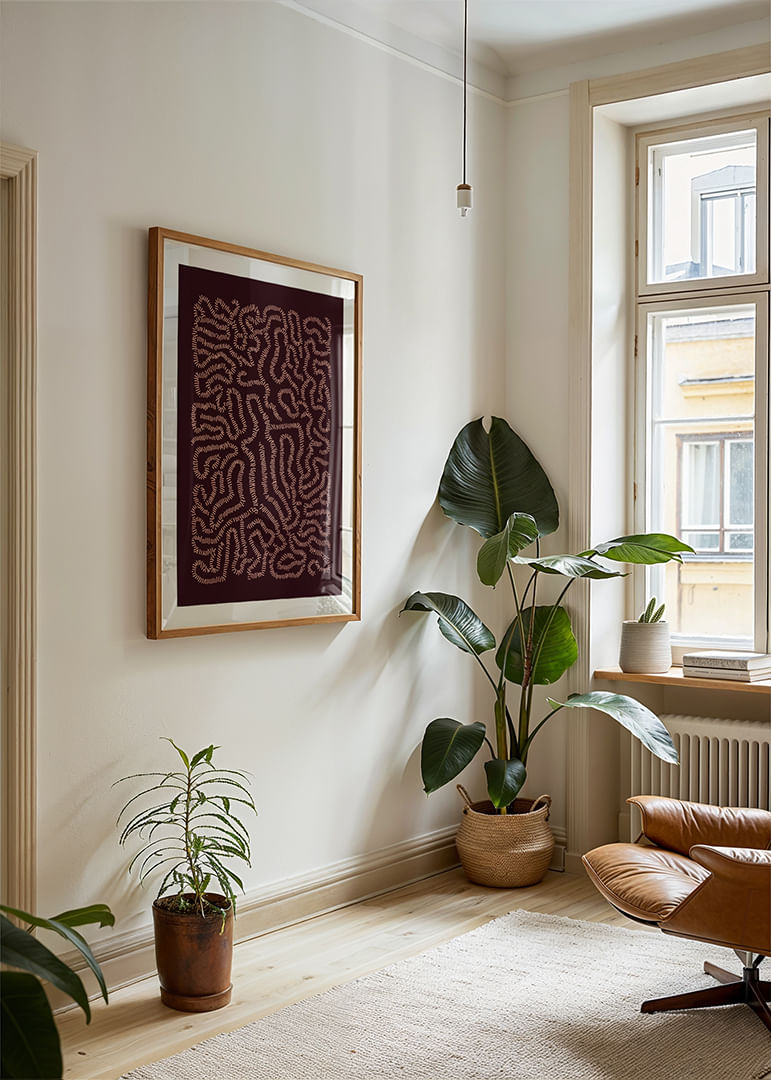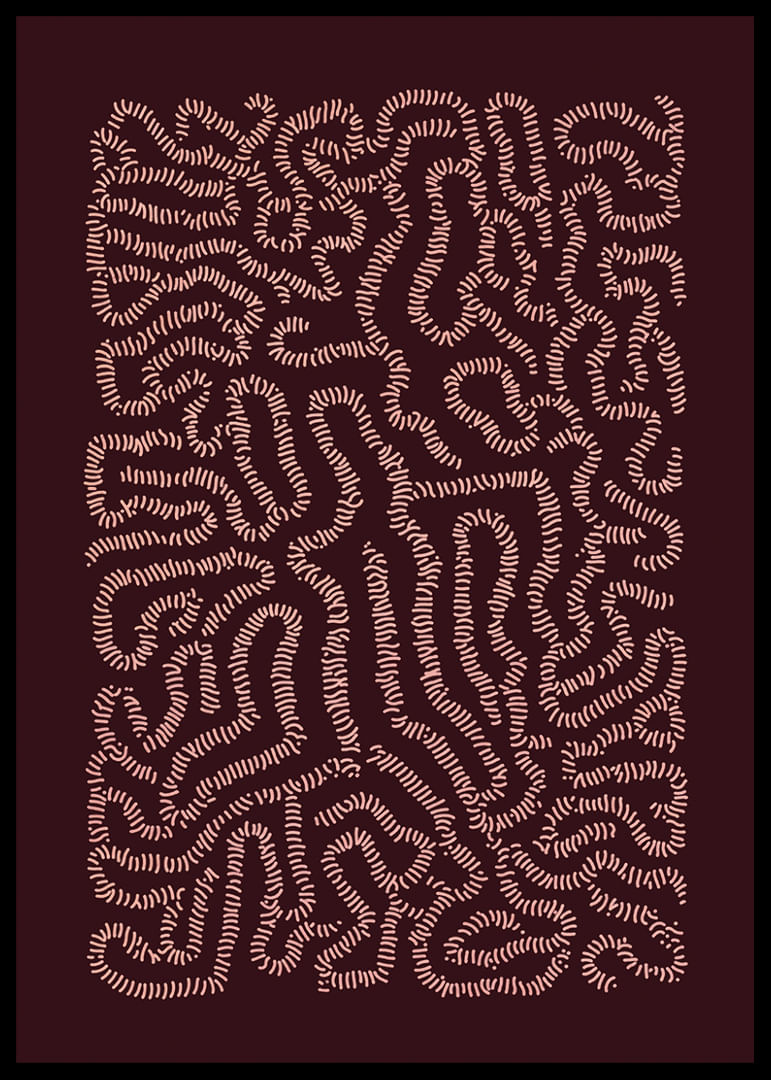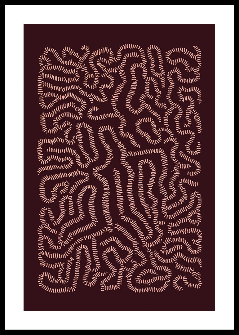 This poster catches the eye with its intricate patterns of winding lines that create a hypnotic labyrinth. The colors play harmoniously together, creating a sense of mystery and depth. By placing this artwork in your home, you will add a unique touch of elegance and thought-provoking beauty, instantly enhancing the atmosphere and inviting reflection and conversation.