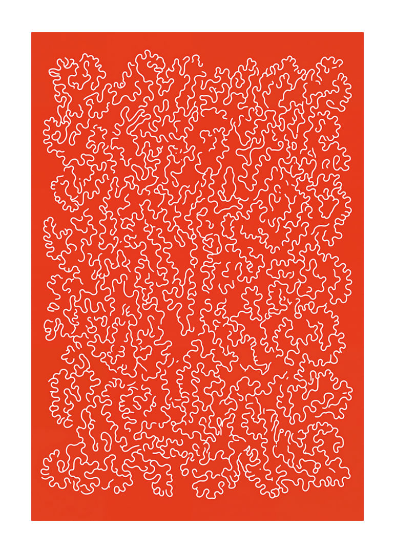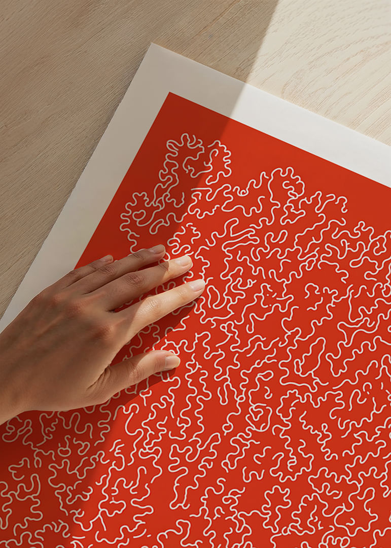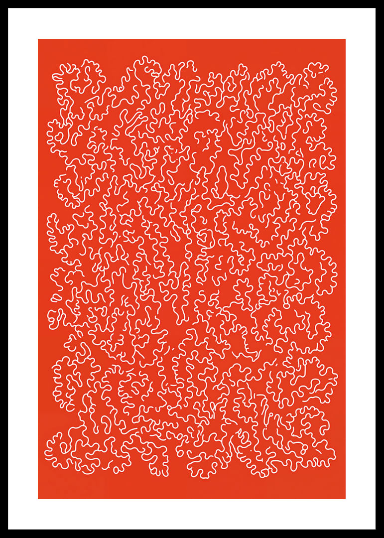 This poster catches the eye with its playful and intricate pattern against a vibrant red background. The winding lines form a captivating network of details, arousing curiosity and a sense of movement. The bold color and dynamic pattern create energy in any room. The poster acts as a stimulating centerpiece in your home decor and elevates the atmosphere with style