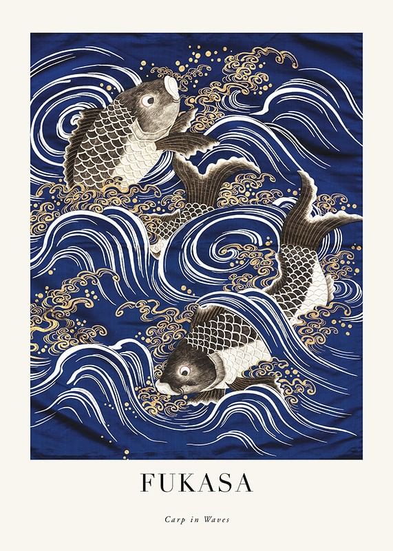 Carp In Waves Fukasa Poster