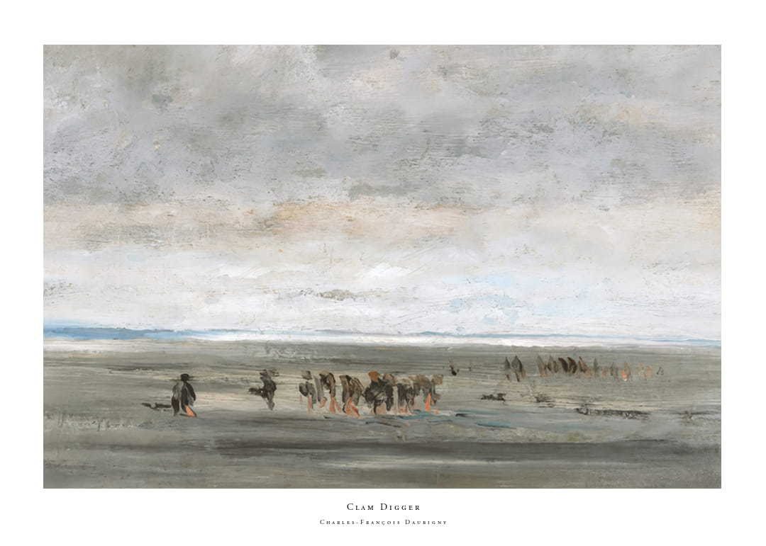 Poster from the category historical art with the painting "Clam Digger" by the French artist Charles-François Daubigny from the years 1850-1860.