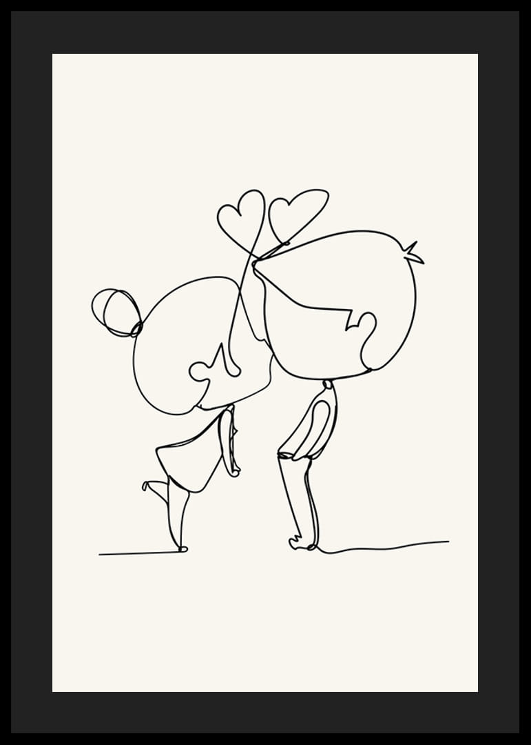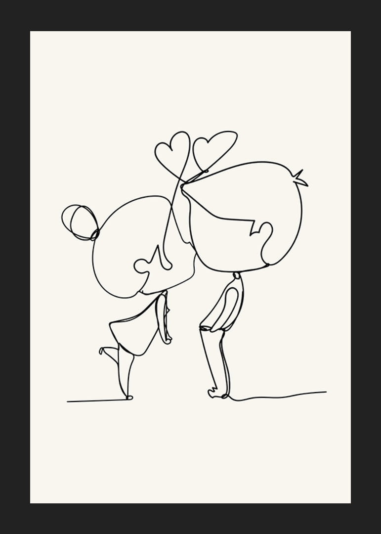 Poster with a minimalist line art illustration of a girl and a boy conveying love in an expressive way.