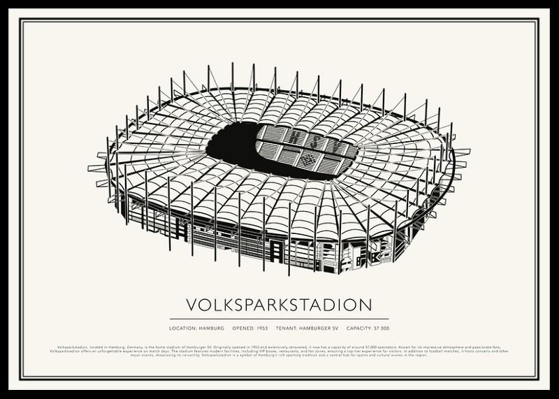 Volksparkstadion, located in Hamburg, Germany, is the home stadium of Hamburger SV. Originally opened in 1953 and extensively renovated, it now has a capacity of around 57,000 spectators. Known for its impressive atmosphere and passionate fans, Volksparkstadion offers an unforgettable experience on match days. The stadium features modern facilities, including VIP boxes, restaurants, and fan zones, ensuring a top-tier experience for visitors. In addition to football matches, it hosts concerts and other major events, showcasing its versatility. Volksparkstadion is a symbol of Hamburg's rich sporting tradition and a central hub for sports and cultural events in the region.