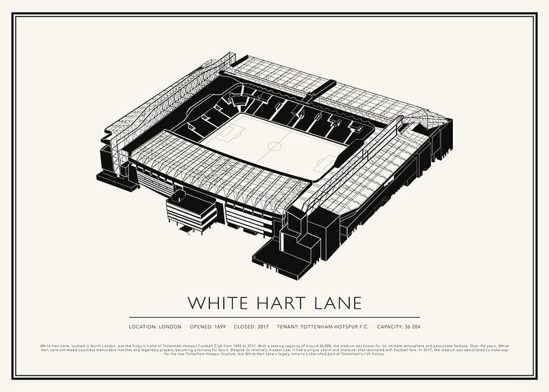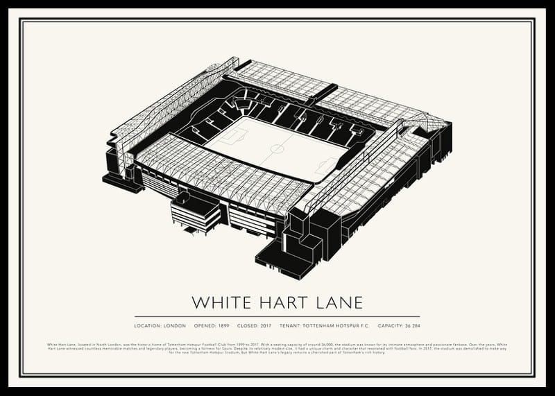 White Hart Lane, located in North London, was the historic home of Tottenham Hotspur Football Club from 1899 to 2017. With a seating capacity of around 36,000, the stadium was known for its intimate atmosphere and passionate fanbase. Over the years, White Hart Lane witnessed countless memorable matches and legendary players, becoming a fortress for Spurs. Despite its relatively modest size, it had a unique charm and character that resonated with football fans. In 2017, the stadium was demolished to make way for the new Tottenham Hotspur Stadium, but White Hart Lane's legacy remains a cherished part of Tottenham's rich history.
