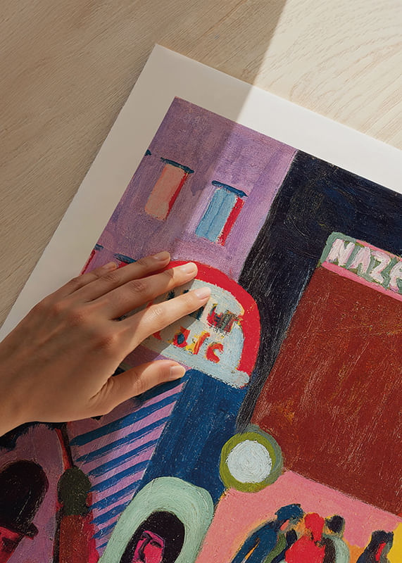 Poster with the painting "Store in the rain" by the German artist Ernst Ludwig Kirchner in 1927.