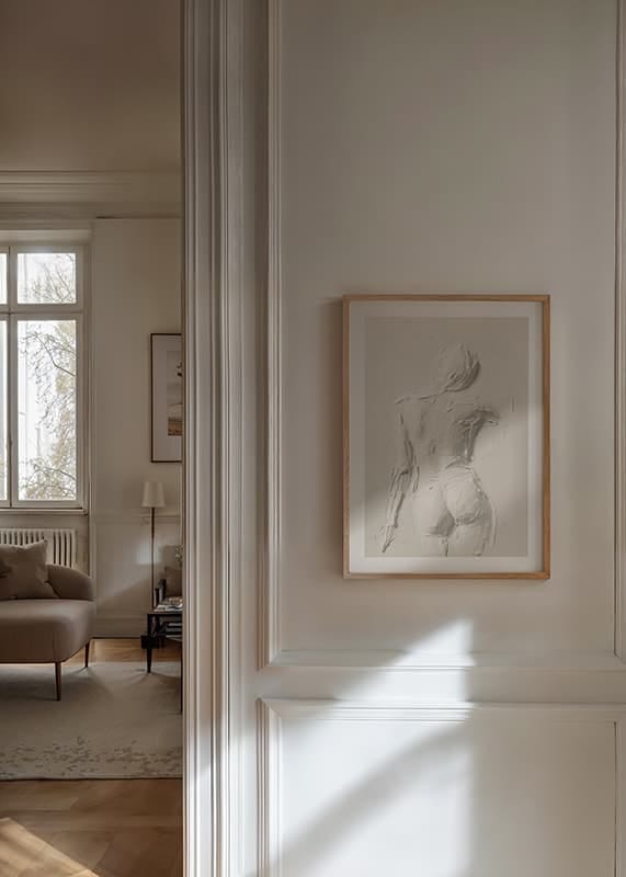 Discover the beauty of the subtle with Ivory Silhouette, a poster that captures the elegant shapes of the body through thick, textured brushstrokes. The monochrome palette creates a harmonious balance of light and shadow, creating a sense of movement and depth.
