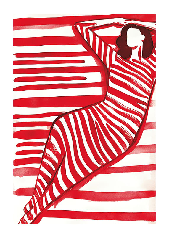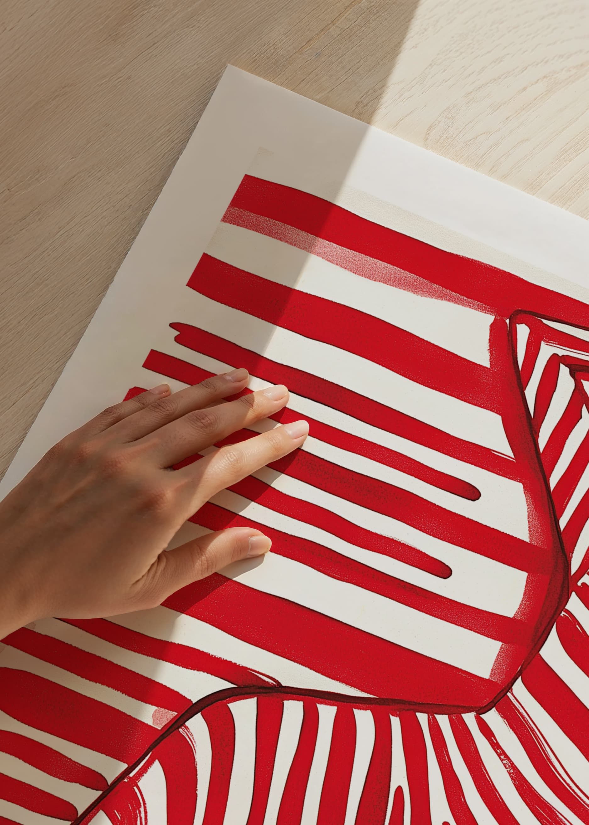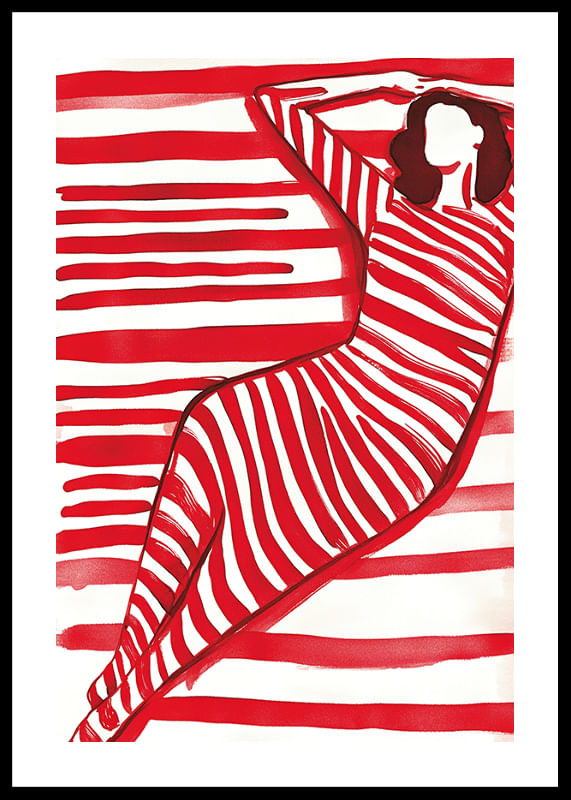 Discover a fascinating world of red and white lines in this artistic poster! With a bold silhouette that merges with the graphic pattern, it gives a playful yet sophisticated expression. Perfect for bringing life to any room, it combines minimalist design with expressive energy.