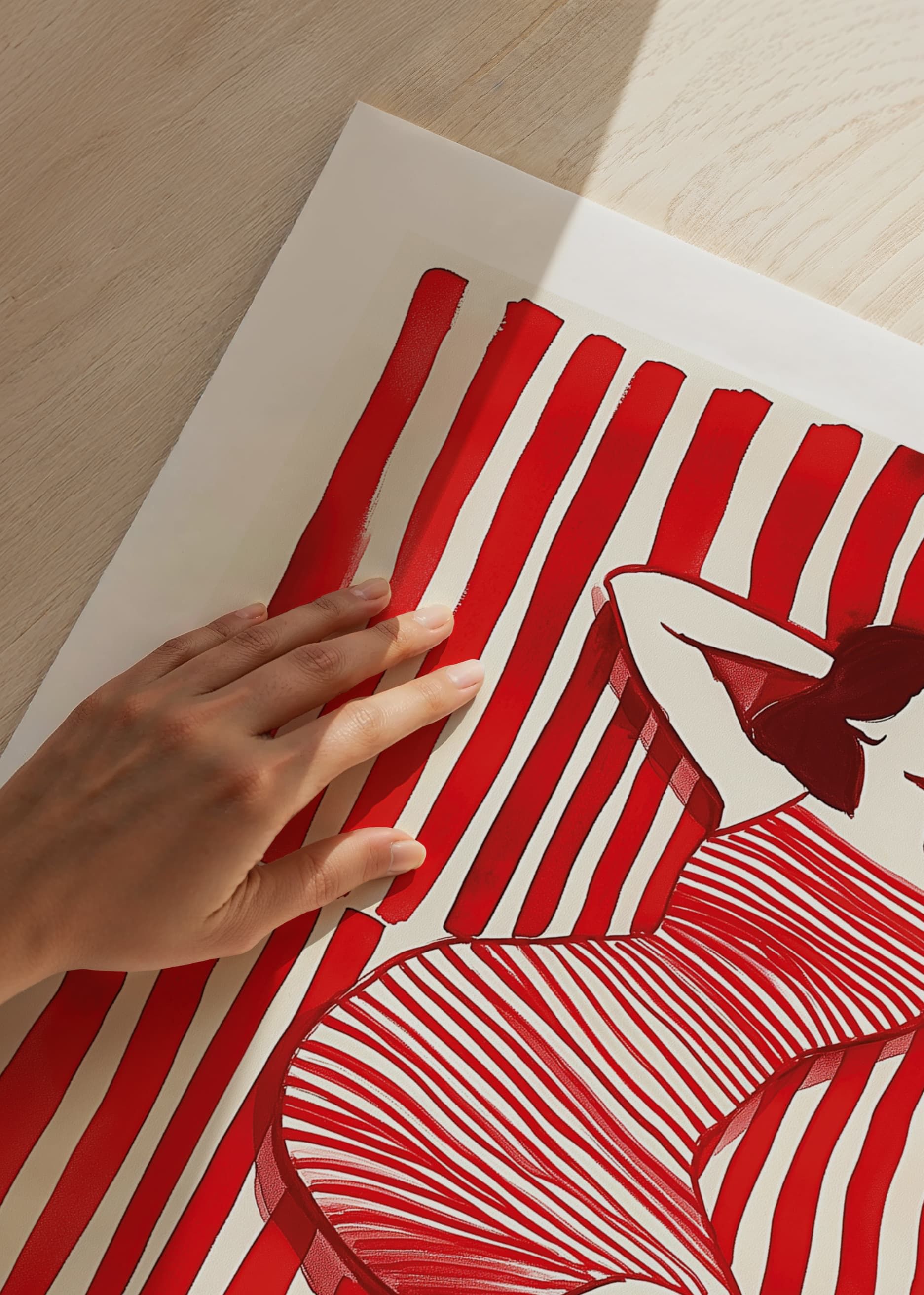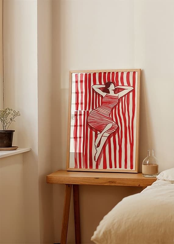 Discover an enchanting world where red and white lines merge in a bold, emotional dance. The stylish siphon rests harmoniously among the contrasting stripes, creating an illusion of movement and stillness. This poster will make a stylish and energetic addition to your room.