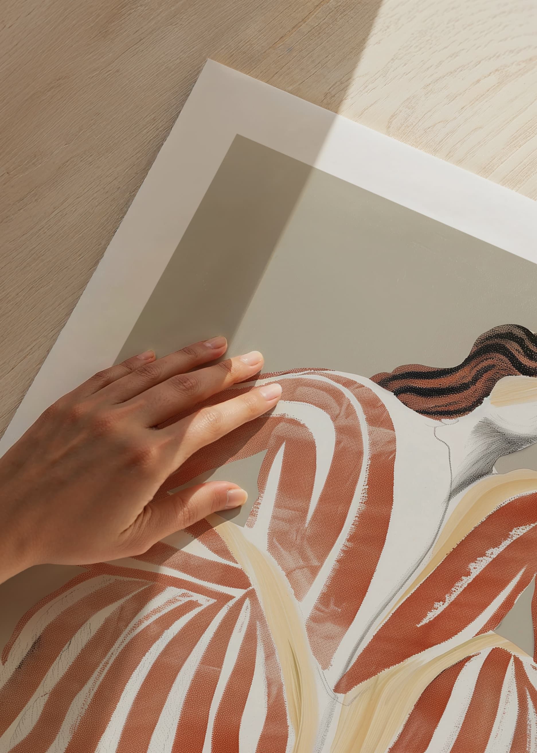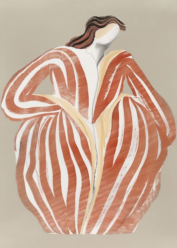 Explore elegance and strength in this captivating illustration, where dynamic lines and warm earth tones create a sense of both movement and peace. The unique combination of abstract shapes arouses curiosity and inspiration, perfect for giving your home an artistic and sophisticated atmosphere.