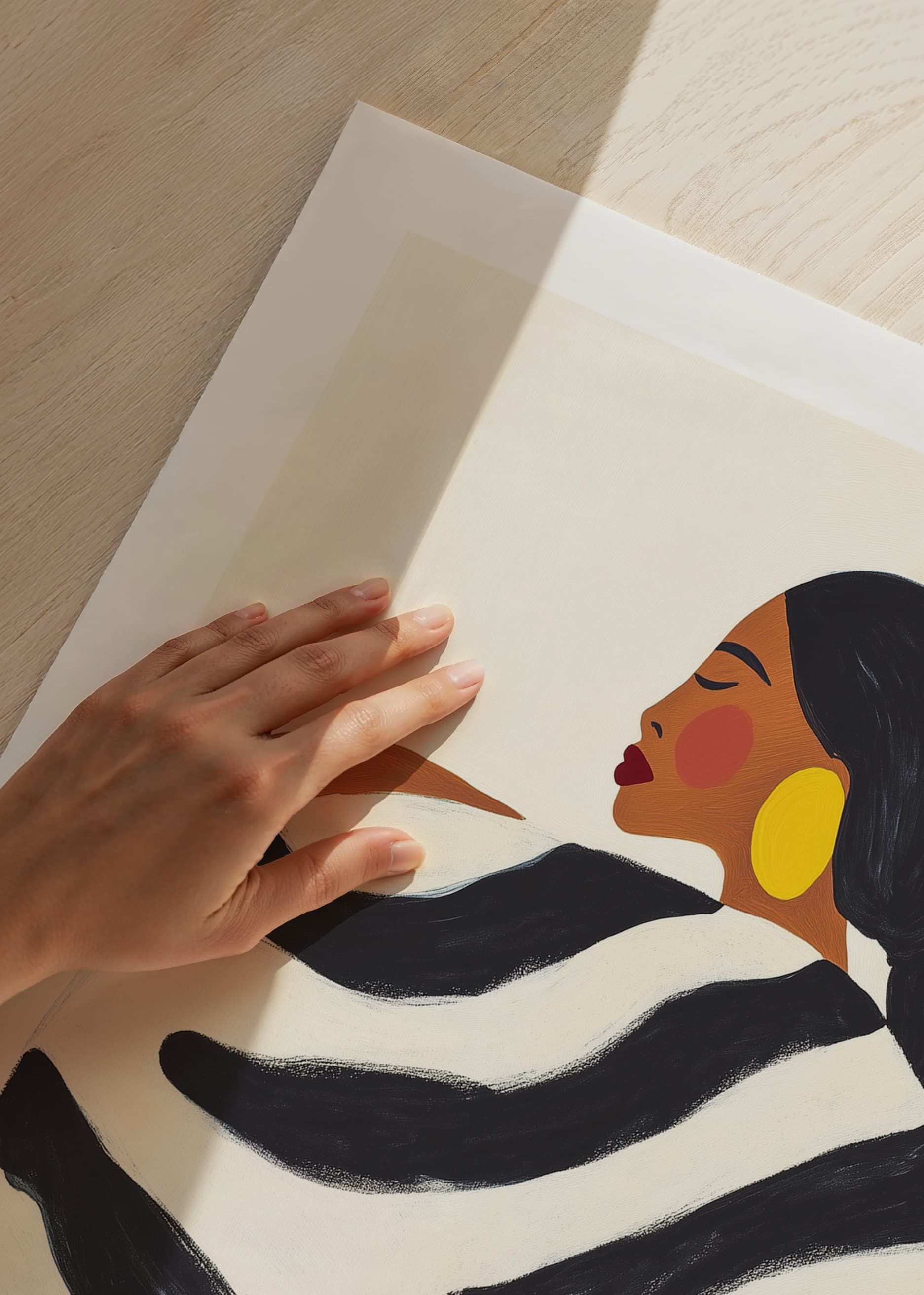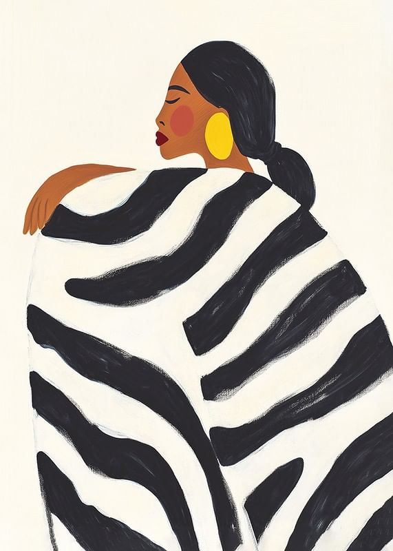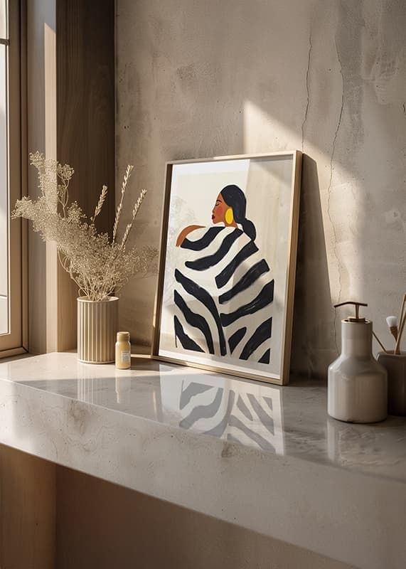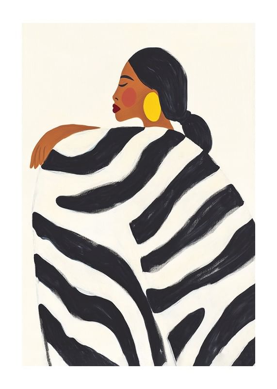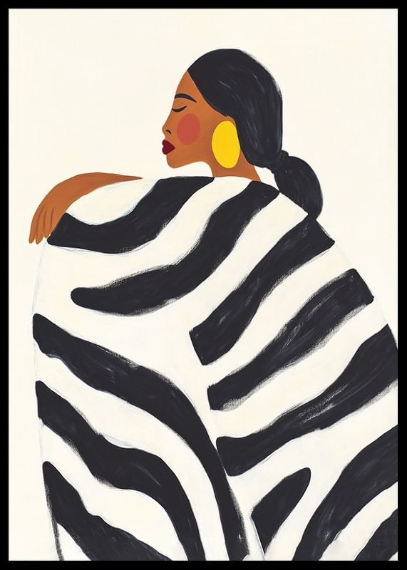 Explore bold elegance with this captivating poster, where style meets confidence in a harmonious balance of black and white patterns. The soft silhouette and rich color tones create a sense of sophisticated simplicity.